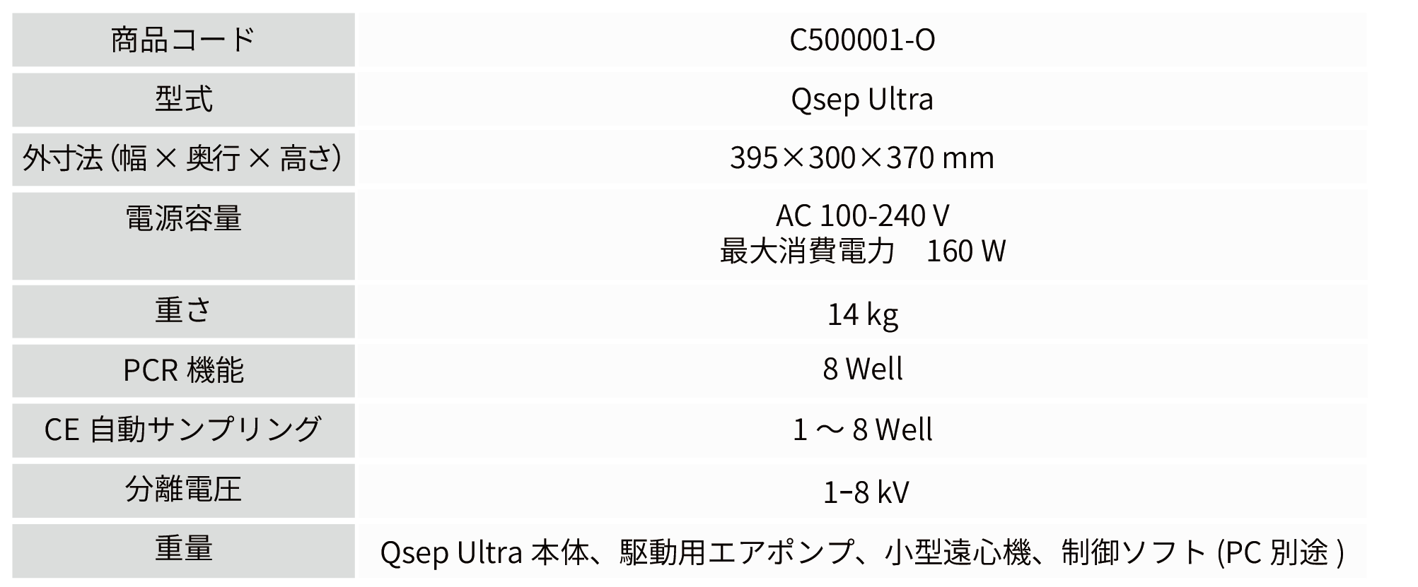 小型遠心機、駆動用ポンプ、Qsep Ultra本体、ソフトウェア